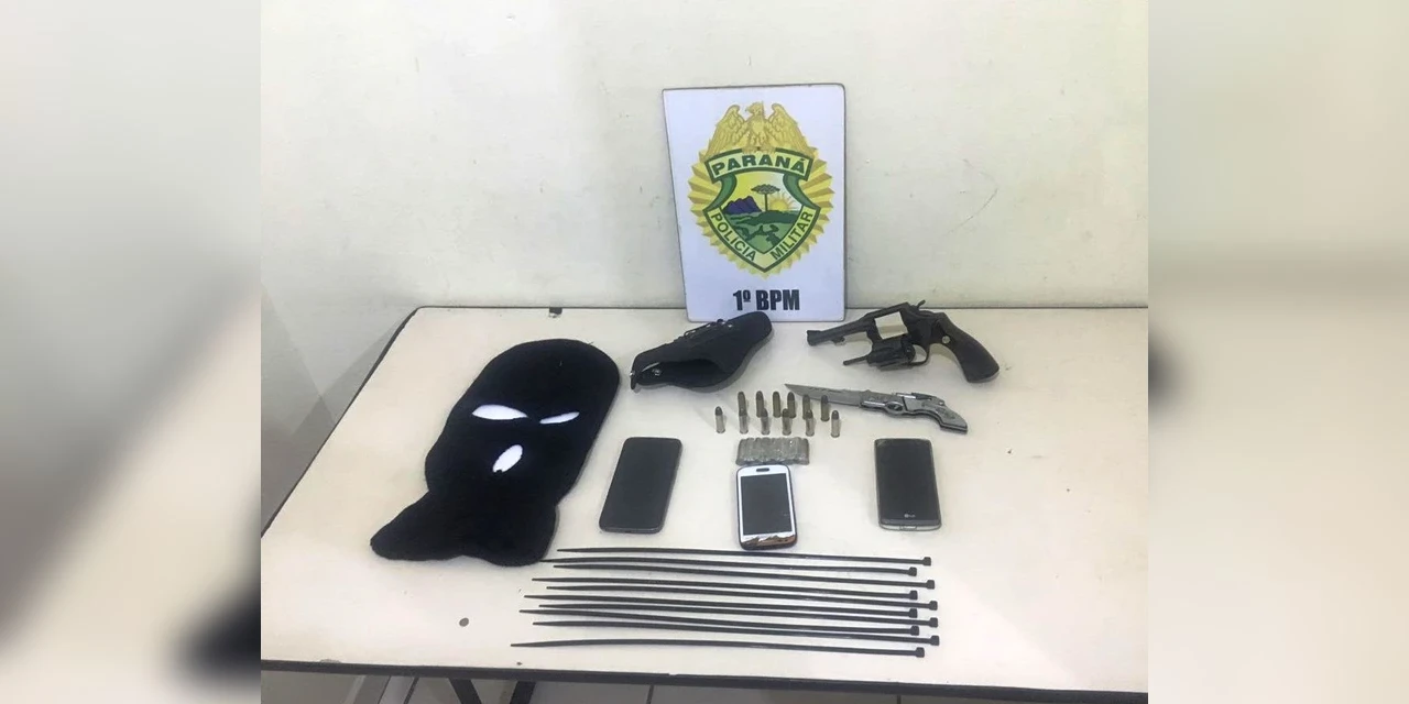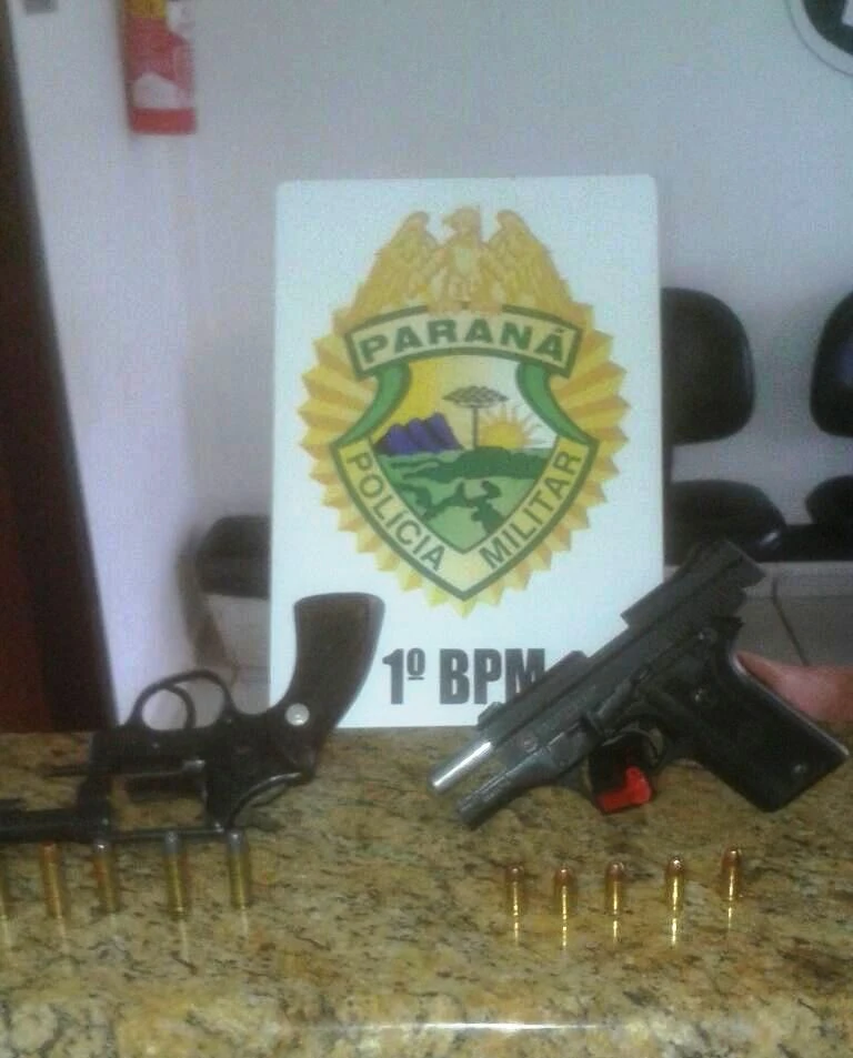 A primeira ocorrência foi registrada durante a madrugada. O condutor de um veículo FIAT/Pálio, apresentando sintomas de embriaguez, tentou se evadir de uma abordagem policial, mas perdeu o controle da direção, colidindo contra o tronco de uma árvore na área central de Ponta Grossa. Com o infrator, na revista pessoal, a PM apreendeu um revólver calibre 38 e 15 munições, além de uma touca tipo balaclava e presilhas plásticas. Outras três pessoas que ocupavam o automóvel abordado também foram encaminhadas.