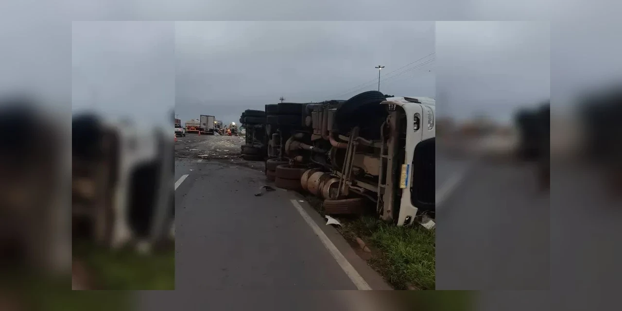 Três pessoas ficaram feridas em um acidente envolvendo três caminhões na BR-376, em Ponta Grossa, nos Campos Gerais do Paraná, nesta sexta-feira (5). De acordo com a Polícia Rodoviária Federal (PRF), os veículos bateram de frente.