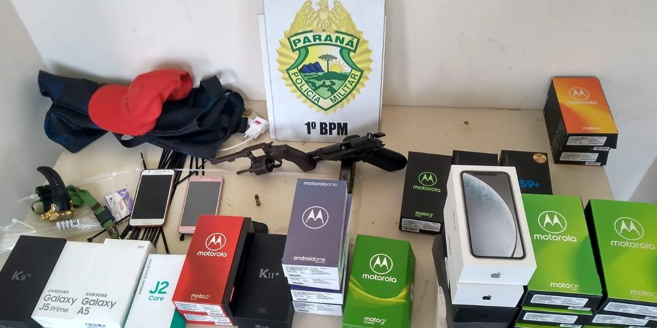 4º CRPM/1º BPM – Três pessoas foram encaminhadas logo após roubarem uma loja de celulares que fica em um shopping na cidade de Ponta Grossa, na região dos Campos Gerais. A ação dos policiais do 1º Batalhão de Polícia Militar (1º BPM), pertencente ao 4º Comando Regional de Polícia Militar (4º CRPM), aconteceu por volta das 11h10 desta sexta-feira (10/05) e resultou na recuperação 27 celulares, um carro roubado e na apreensão de duas armas de fogo.