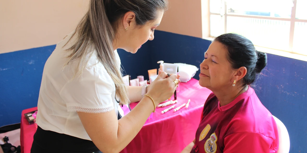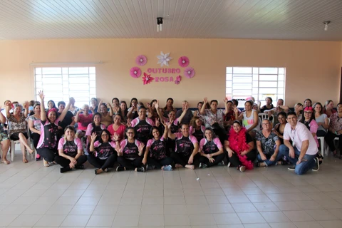 Cerca de 80 mulheres participaram das atividades que contaram com orientações sobre o câncer de mama, sorteio de brindes, maquiagem, lanche especial e cama-elástica para as crianças.