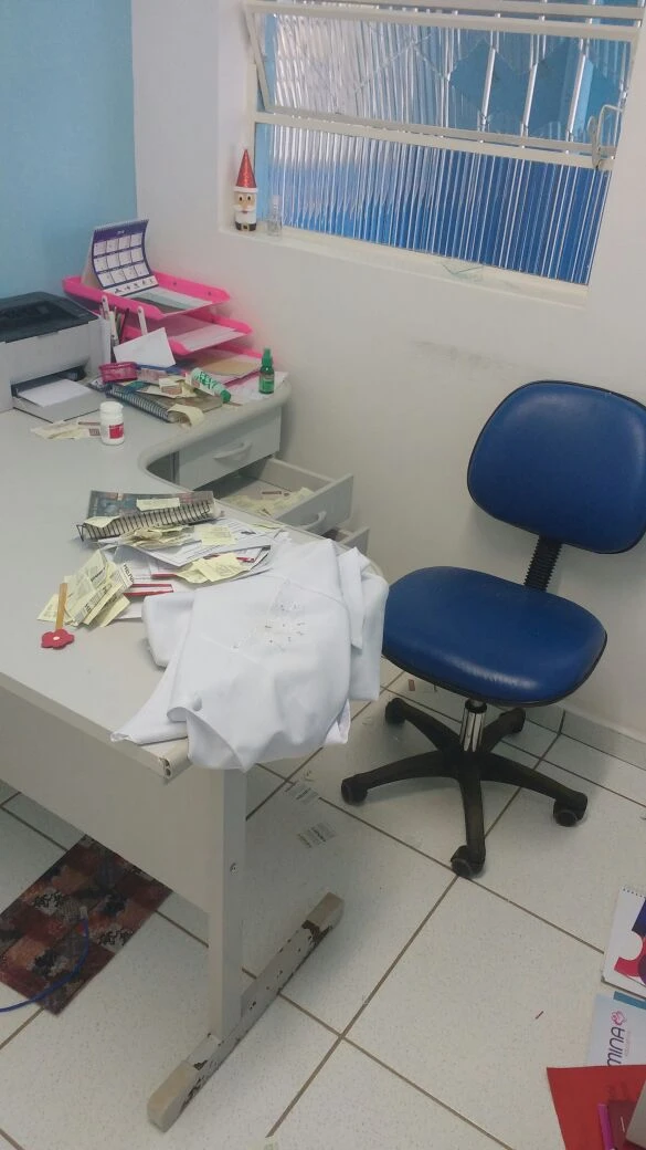 Os ladrões roubaram computadores e medicamentos da farmácia, além de bagunçarem e depredarem as salas de atendimento dos pacientes. Ainda não foi possível levantar o valor dos danos causados.