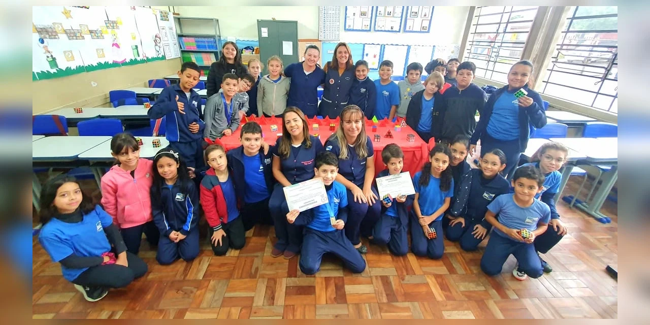 No projeto "Desvendando o Cubo Mágico: Uma Jornada de Histórias e Desafios", conduzido pelas professoras Caroline Graboski Sansana e Solange Evan Maria Malanczen, do 4º ano, os cubos foram utilizados como ferramenta pedagógica para desenvolver diversas habilidades cognitivas, em quatro etapas: introdução ao cubo mágico; desvendando os primeiros passos; aprofundamento e resolução completa; desafios e aplicações. Cada etapa foi cuidadosamente planejada para integrar conhecimentos matemáticos e de geometria com atividades práticas e lúdicas, com histórias e também tutoriais disponíveis na internet.