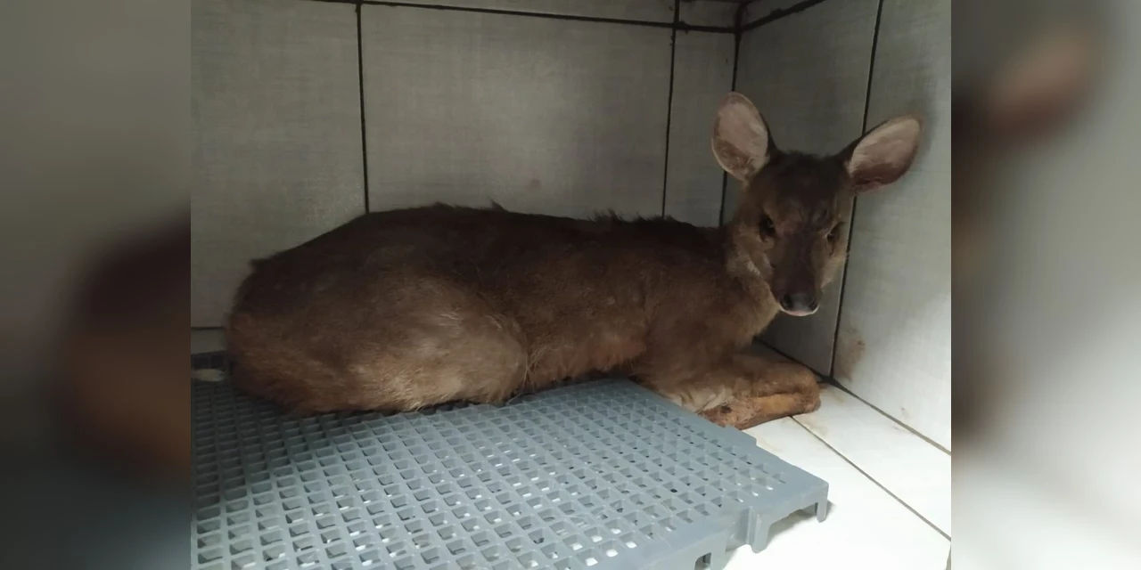 Um veado foi resgatado pela Polícia Ambiental com ferimentos em uma área urbana de Ponta Grossa, nos Campos Gerais do Paraná, na quarta-feira (4).