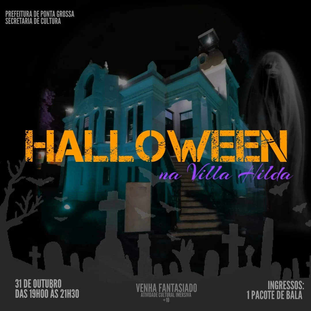 COM ASSESSORIAS - Será realizado amanhã, dia 31, o ‘Halloween na Villa Hilda’. Entre as 19h e 21h30, as portas da Mansão, que abriga o Museu Municipal Aristides Spósito, estarão abertas para receber toda comunidade no evento alusivo ao Dia das Bruxas. A promoção é da Prefeitura de Ponta Grossa, através da Secretaria Municipal de Cultura. Para participar, basta levar um pacote de bala. A arrecadação dos doces visa a distribuição para crianças no Natal.