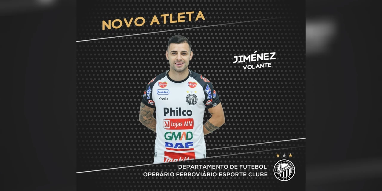 COM ASSESSORIAS - O Operário Ferroviário anunciou, na tarde desta terça-feira (4), novo atleta para o elenco de 2020. O volante Jiménez, de 26 anos, se apresentou ao clube, passará por exames médicos e demais procedimentos e será apresentado oficialmente nos próximos dias.