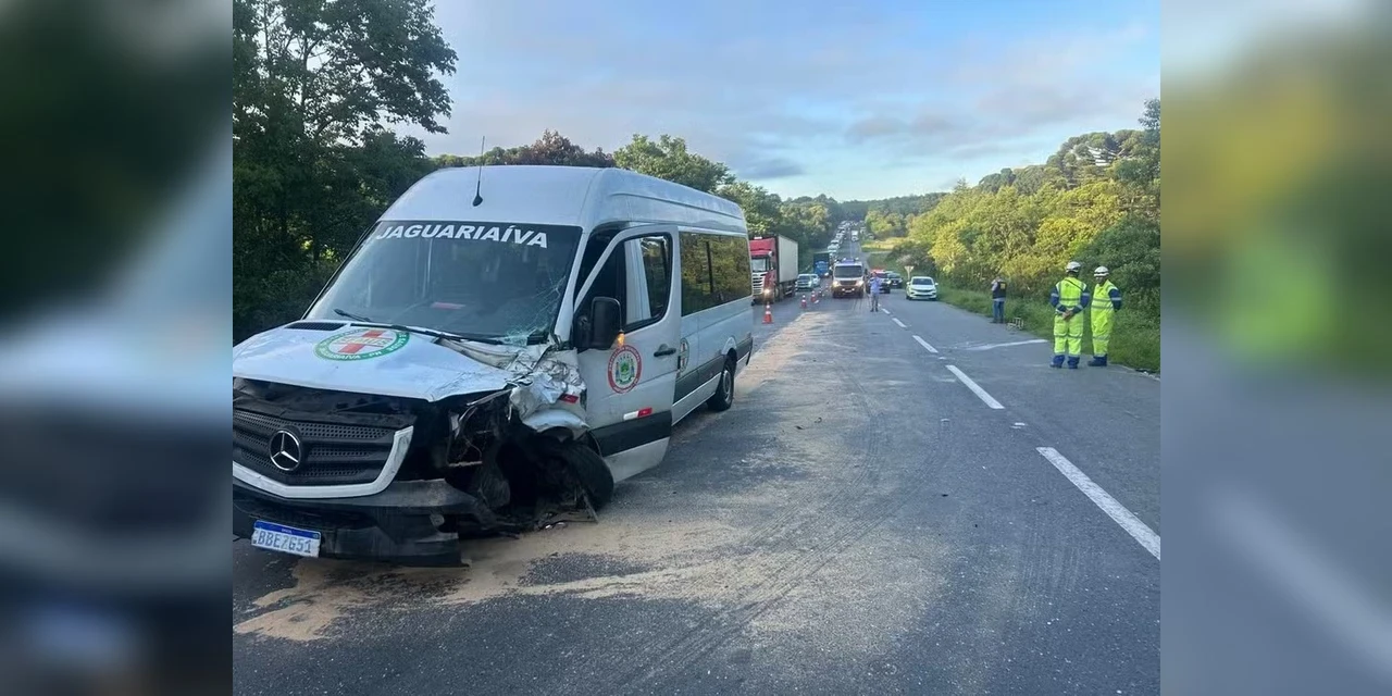 A van transportava 15 passageiros e três foram encaminhadas para hospitais de Curitiba com ferimentos leves, de acordo com a Polícia Rodoviária Federal (PRF).