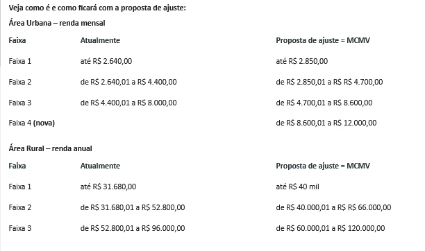 Já a nova faixa 4, que vai de R$ 8.600,01 a R$ 12 mil, permitirá que moradores com renda um pouco maior possam financiar diretamente seus imóveis pela Caixa Econômica Federal, dentro das condições do Minha Casa Minha Vida.
