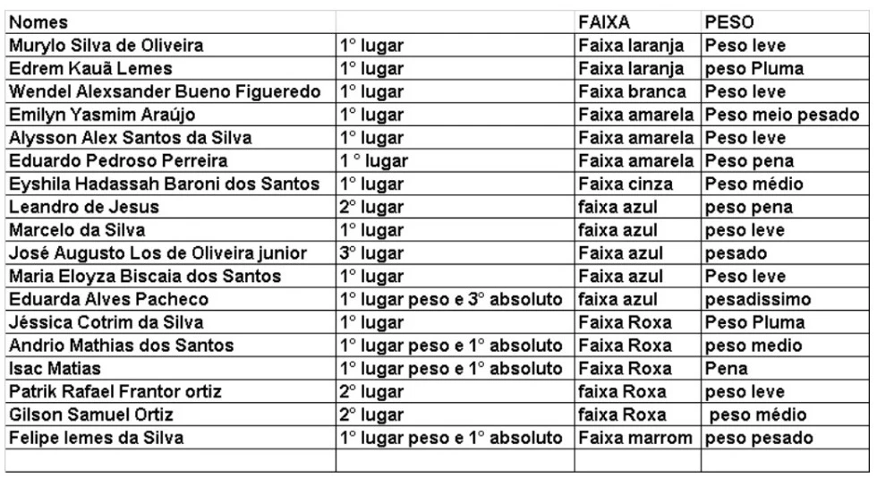 Das 24 medalhas conquistadas, 14 foram primeiros lugares. “Estamos felizes com o desempenho da equipe. Essas conquistas evidenciam a qualidade de nossos atletas”, ressaltou.