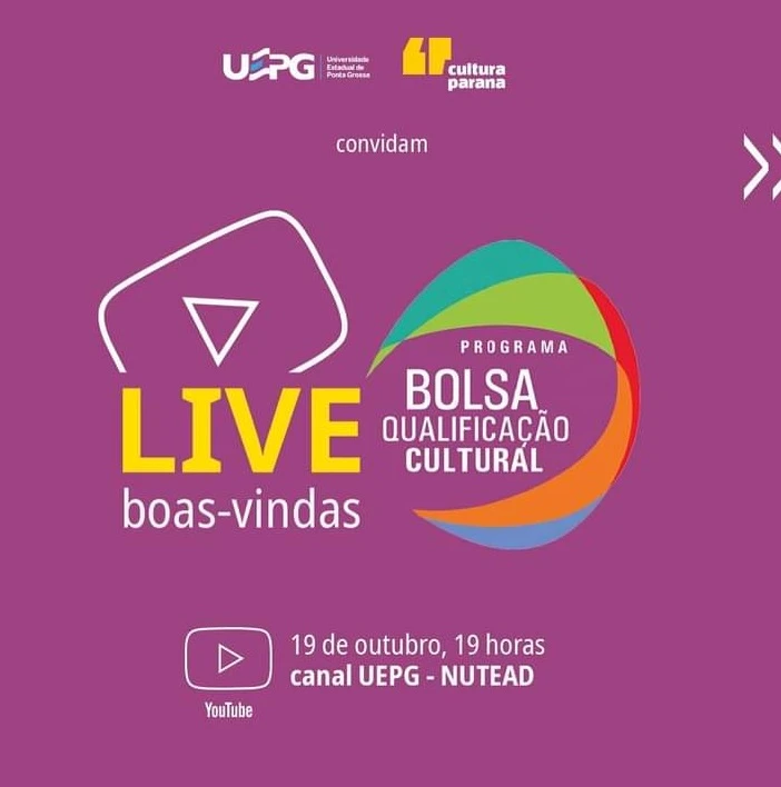 Também será realizada uma live de boas vindas para os inscritos, onde será explicado sobre o Bolsa Qualificação. A live está prevista para acontecer no dia 19 de outubro, às 19 horas, no YouTube, no canal da UEPG – NUTEAD, pelo
