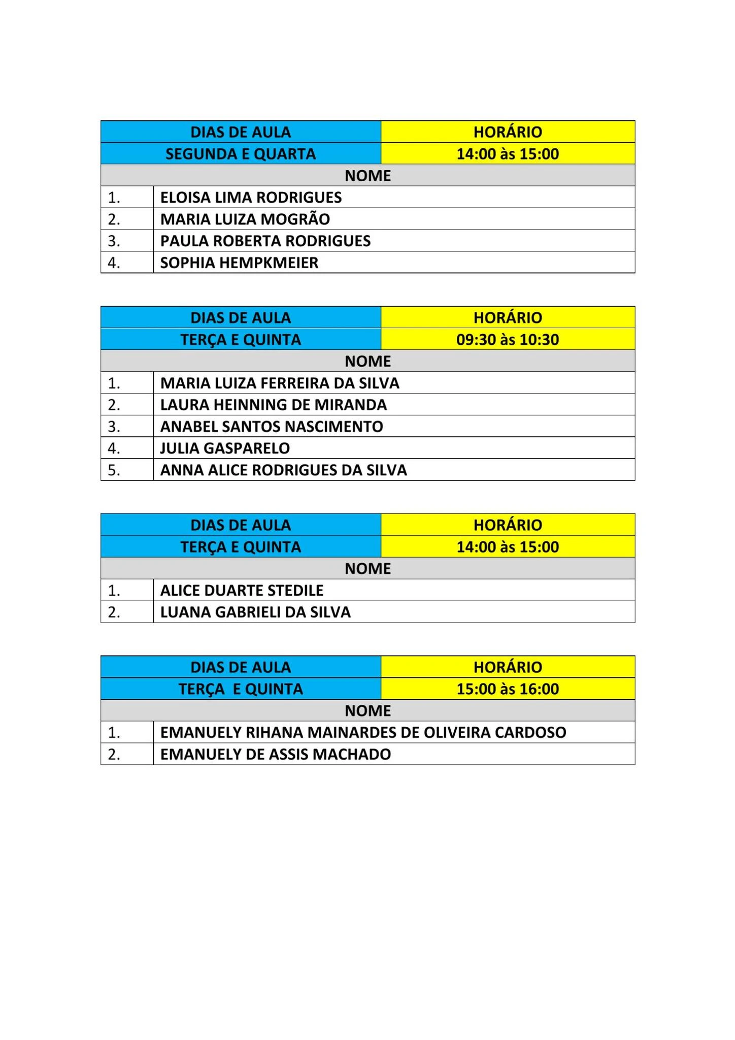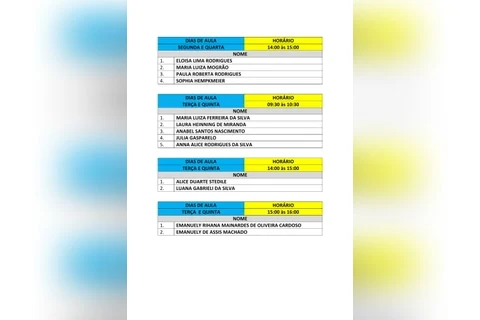 Início das aulas: Turmas de segunda e quarta, dia 08 de junho (quarta - feira) e turmas de terça e quinta, dia 09 de junho (quinta-feira).