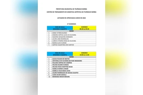 COM ASSESSORIAS - O Centro de Treinamento de Ginástica Artística de Telêmaco Borba (CTGA), realizou sexta-feira (03) a seleção para preenchimento de vagas, com foco principal na faixa etária entre 5 e 7 anos. Compareceram ao Centro de Treinamento mais de 70 crianças, atendidas nos períodos da manhã e tarde, sendo selecionadas 30 (listagem anexa nesta matéria).