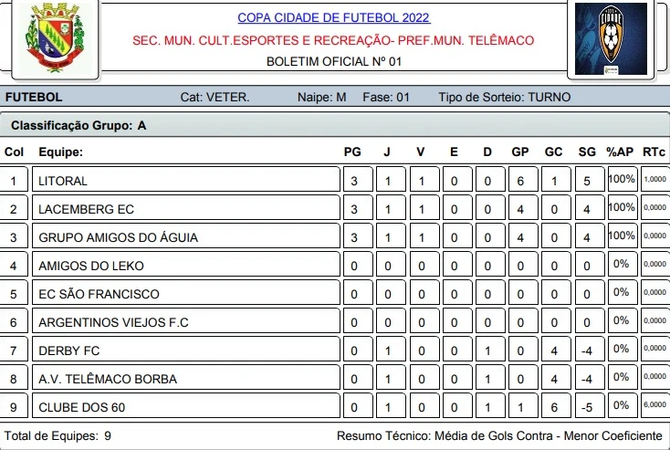 10h – Clube dos 60 x Lacemberg – Veteranos – Grupo Único