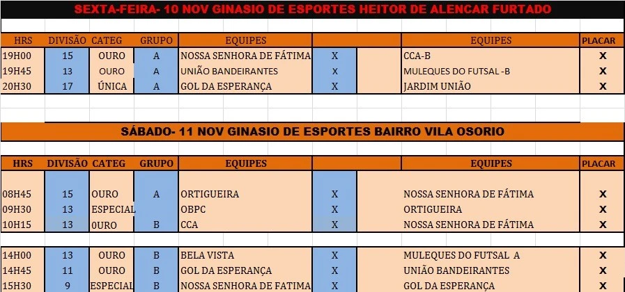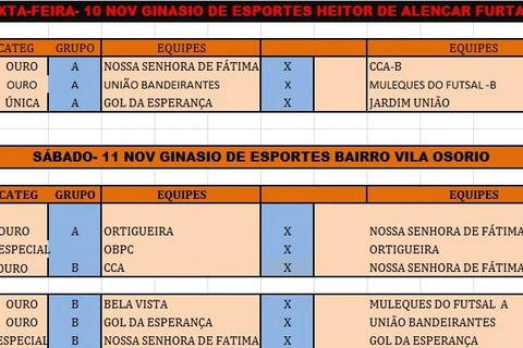 Na sexta (10) a rodada será disputada no ginásio Furtadão a partir das 19 horas e no sábado (11) às 08h45 no ginásio da Vila Ozório.