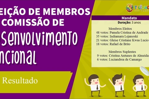 COM ASSESSORIAS - A eleição para membro da Comissão de Desenvolvimento Funcional da Prefeitura de Telêmaco Borba ocorreu, no dia 28 de março, e elegeu os novos membros para um mandato de três anos. Apenas servidores concursados e ativos tiveram direito ao voto. O pleito contou com a presença de 137 eleitores, número recorde.
