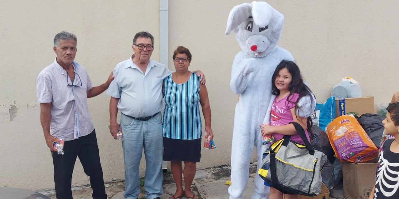 O prefeito, Dr. Marcio Matos, e o secretário geral de Gabinete, Dr. Rubens Benck, acompanharam o Coelho da Páscoa na entrega dos doces nos bairros Área 01 e Vila Ozório. “A Feira do Bem é um programa ótimo, que é referência em todo o estado. E essa distribuição de doces, com a presença do Coelho da Páscoa, torna isso muito mais especial. É muito satisfatório ver as crianças felizes por serem lembradas nessa data tão significativa. A Feira do bem se tornou uma verdadeira festa”, comentou o prefeito.