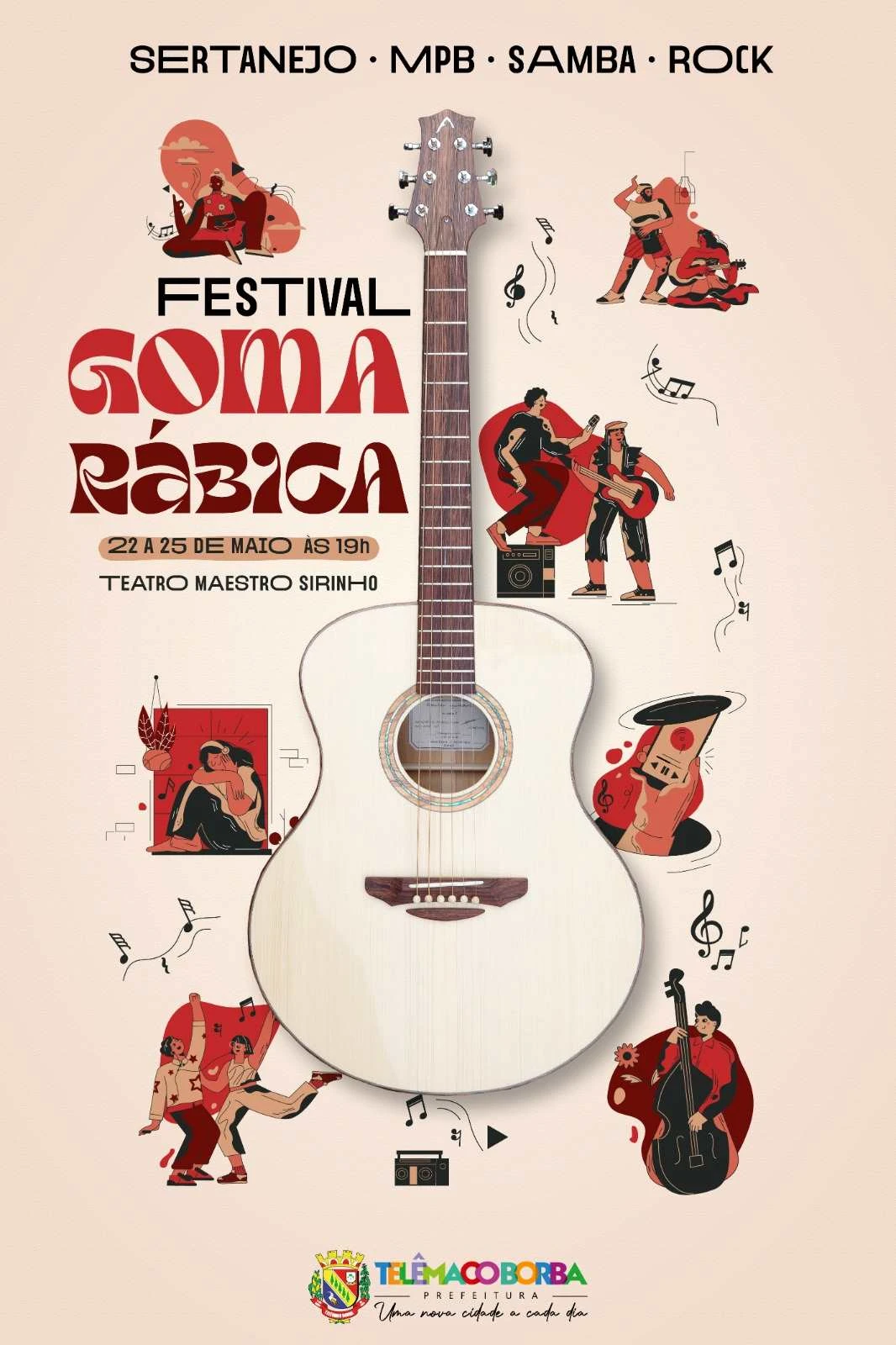 COM ASSESSORIAS - Inicia-se nesta quarta-feira (22), às 19h, no Teatro Maestro Sirinho, do Centro Cultural Eloah Martins Quadrado (Casa da Cultura), o Festival Gomarábica edição 2024. As apresentações seguem até sábado (25) quando serão conhecidos os ganhadores. O evento é promovido pela Prefeitura de Telêmaco Borba e organizado pela Secretaria Municipal de Cultura, Esportes e Recreação (SMCER).
