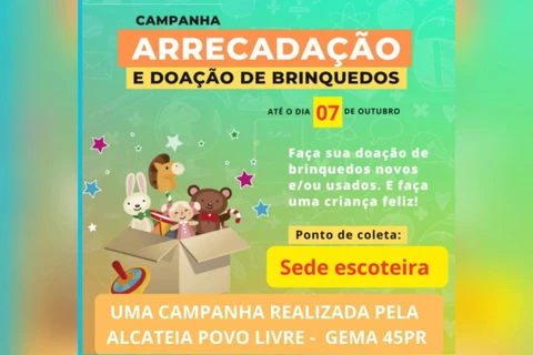 A campanha de arrecadação de brinquedos, novos e usados em bom estado de conservação, deve ocorrer até o dia 07 de outubro (sábado).