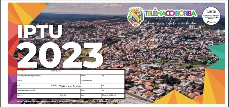 COM ASSESSORIAS - A Prefeitura de Telêmaco Borba, por meio da Secretaria Municipal de Finanças, informa aos contribuintes que já é possível emitir a guia de pagamento do IPTU 2023 pela internet. Para isso, basta acessar o site da prefeitura