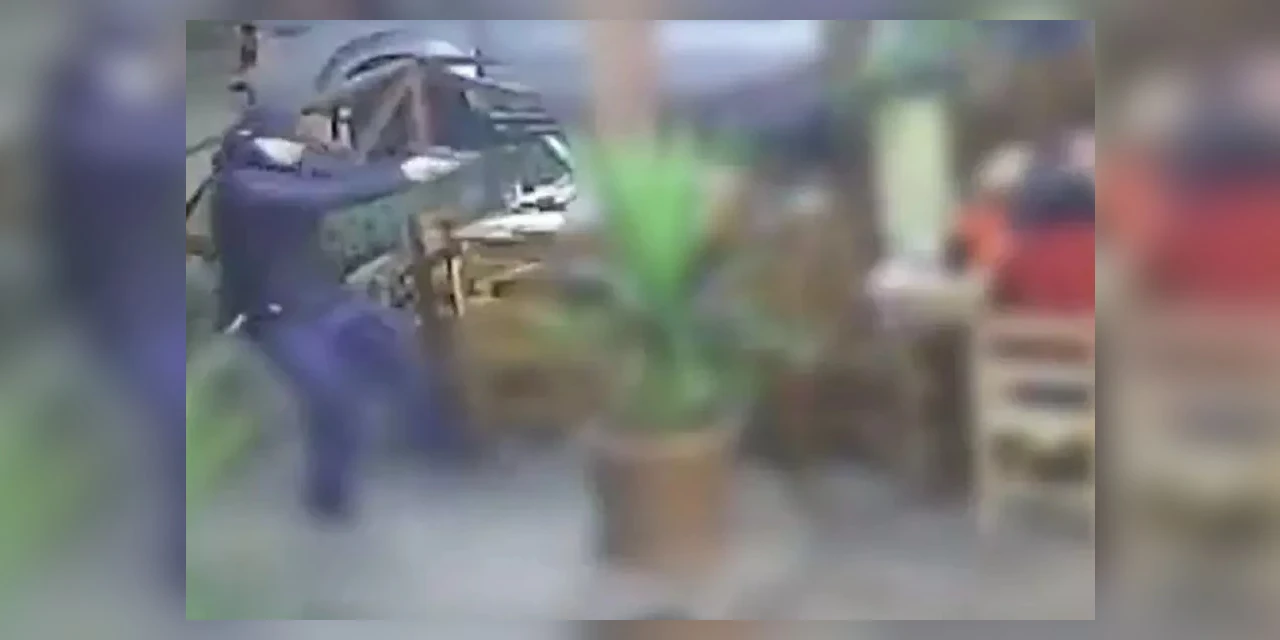 As imagens da câmera de segurança mostram dois homens caminhando em direção à lanchonete. Assim que eles chegam no local, um deles saca a arma e começa a atirar. Os clientes se assustam e fogem.