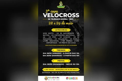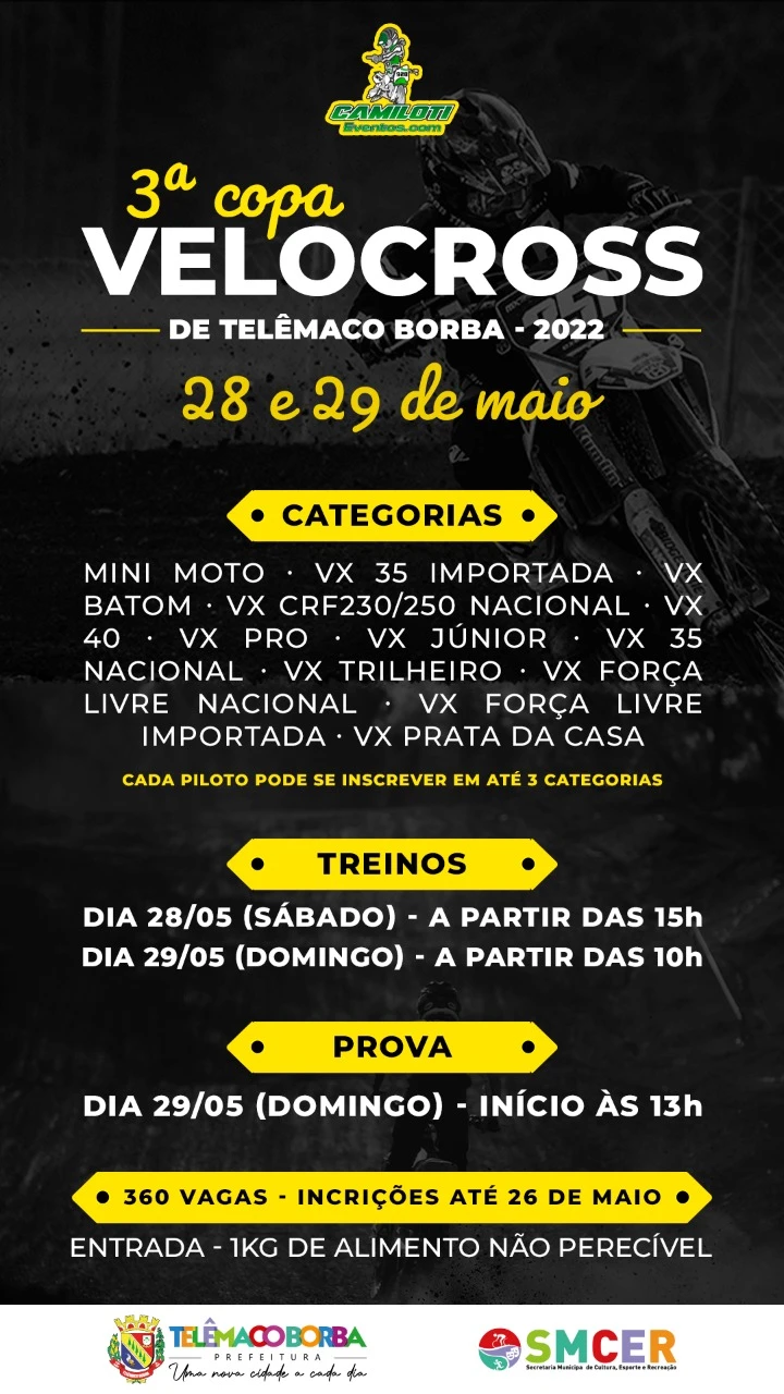 COM ASSESSORIAS - As inscrições para a 3ª Copa de Velocross de Telêmaco Borba podem ser feitas até o dia 26 de maio no endereço