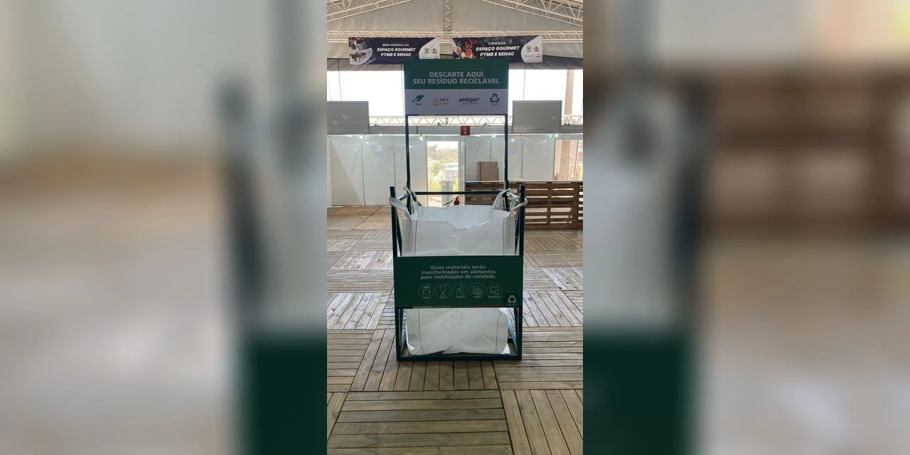 Cerca de 10 lixeiras sinalizadas foram distribuídas pelo Centro de Eventos Mieceslau Malinowski, durante a Expo Telêmaco 2024, para receber materiais feitos de metal, papel, papelão, vidro e plástico. As arrecadações foram encaminhadas para a Cooperativa de Trabalho dos Agentes Ambientais ReciclaTB, participantes do Programa de Resíduos Sólidos da Klabin, onde serão tratadas para serem entregues à Feira do Bem, quando serão revertidas em hortifrutis para doação a associações beneficentes.