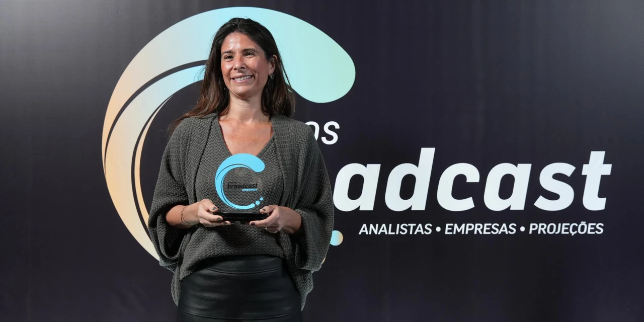 Gabriela Woge, Diretora de Finanças Corporativas e de Relações com Investidores da Klabin, recebe prêmio do ranking Broadcast Empresas. (Imagem: Divulgação)