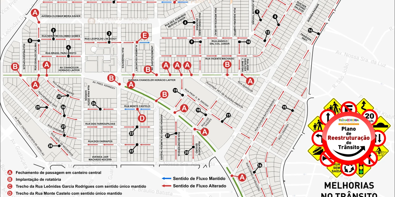 As mudanças fazem parte do Projeto de Reestruturação do Trânsito no município e visa proporcionar maior segurança aos pedestres, motoristas e aos munícipes que transitam pelo Centro.