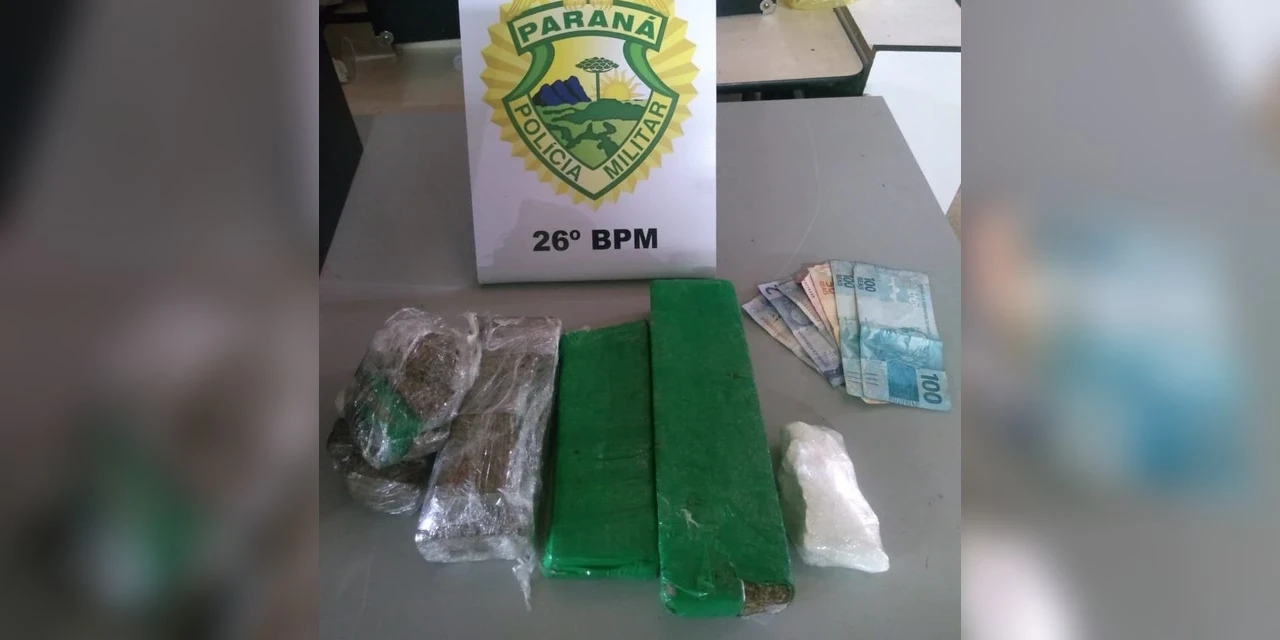 Os policiais abordaram três homens em um carro que estava seguindo sentido cidade de Imbaú. Dentro do veículo foi encontrado 100 gramas de cocaína e dois quilos de maconha. Os homens de 18, 19 e 36 anos contaram que são moradores de Imbituva e buscaram a droga em Telêmaco Borba para levar e vender as drogas no município onde residem.