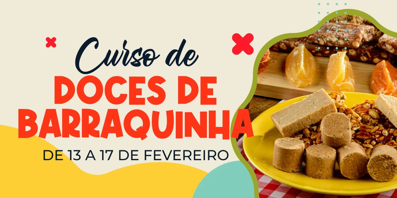 O curso Doces de Barraquinha será ministrado pelo SENAC – Serviço Nacional do Comércio, no período de 13 a 17 de fevereiro, em uma cozinha instalada no Terminal Rodoviário, à tarde, das 14h às 17h, e a noite, das 19h às 22h.