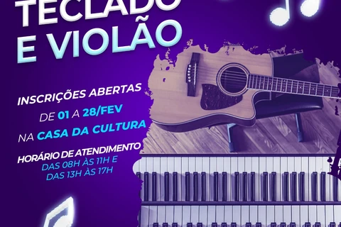 COM ASSESSORIAS - A Prefeitura de Telêmaco Borba abre, de 1º a 28 de fevereiro, as inscrições para aulas de violão, teclado e piano popular, gratuitamente. As inscrições devem ser feitas na Secretaria Municipal de Cultura, Esportes e Recreação, no Centro Cultural Eloah Martins Quadrado (Casa da Cultura), de segunda a sexta, das 8h às 11h e das 13h às 17h.