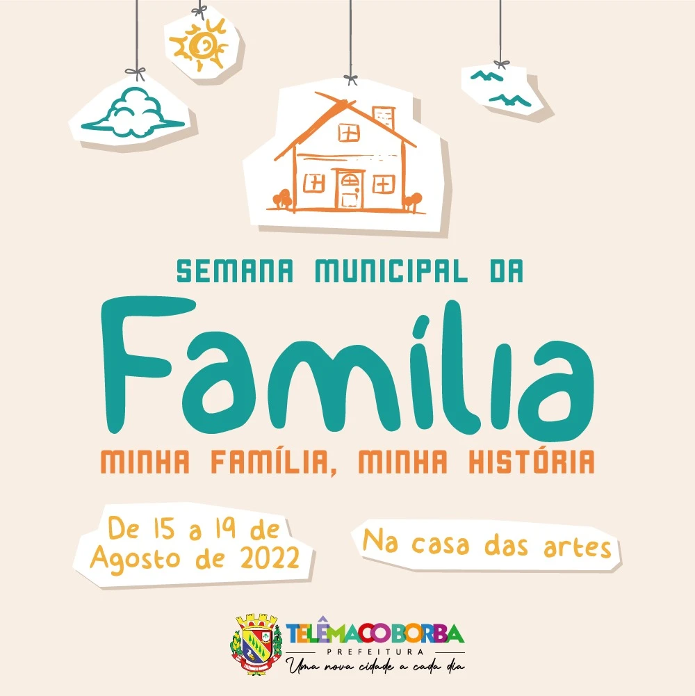 COM ASSESSORIAS - A Prefeitura, por meio da Secretaria Geral de Gabinete, promove em parceria com a Secretaria Municipal de Educação e o Museu Histórico Municipal, a Semana Municipal da Família, de 15 a 19 de agosto, na Casa das Artes.
