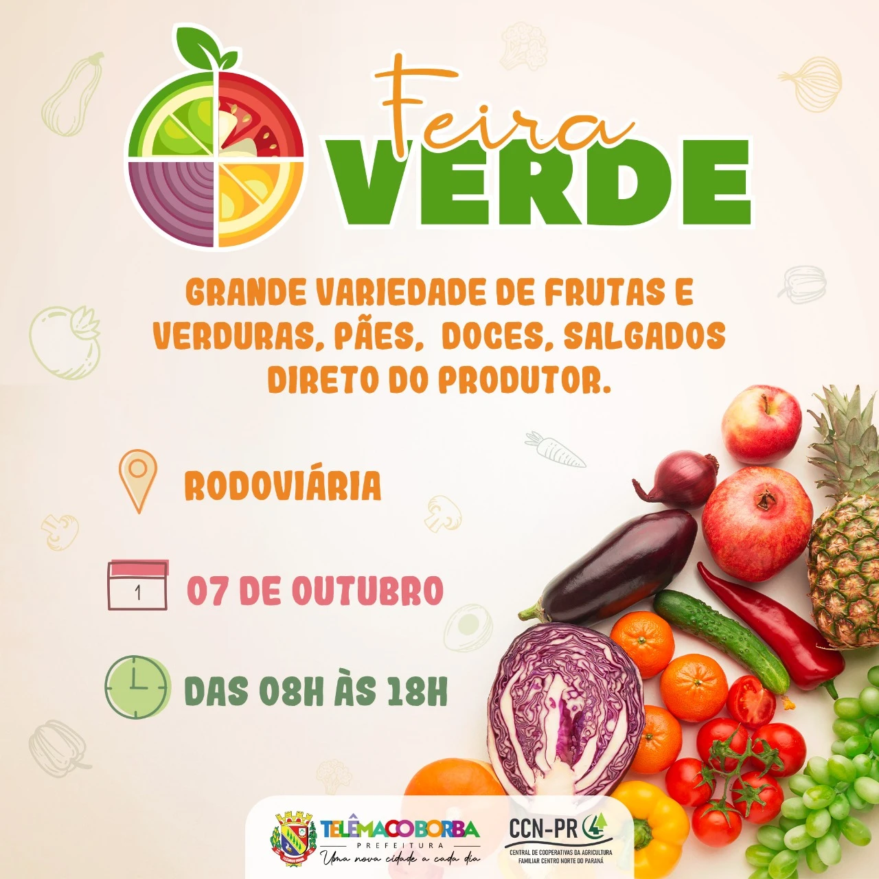 COM ASSESSORIAS - A Prefeitura, por meio da Secretaria Municipal do Trabalho e Indústria Convencional (SMTIC), em parceria com a Central de Cooperativas da Agricultura Familiar Centro Norte do Paraná, realiza na próxima sexta-feira (07), a primeira Feira Verde de Telêmaco Borba.