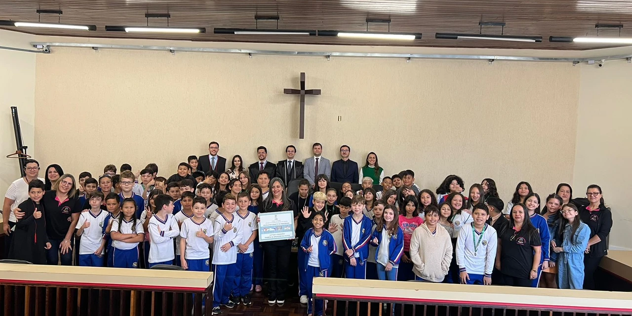 COM ASSESSORIAS - No dia 20/10 aconteceu a conclusão do Programa Justiça na Escola, promovido pelo Poder Judiciário, com a visita de estudantes e professores da Escola Municipal Conselheiro Zacarias ao Fórum de Telêmaco Borba, onde foi realizado um Júri Simulado pelos estudantes e premiação das melhores redações.