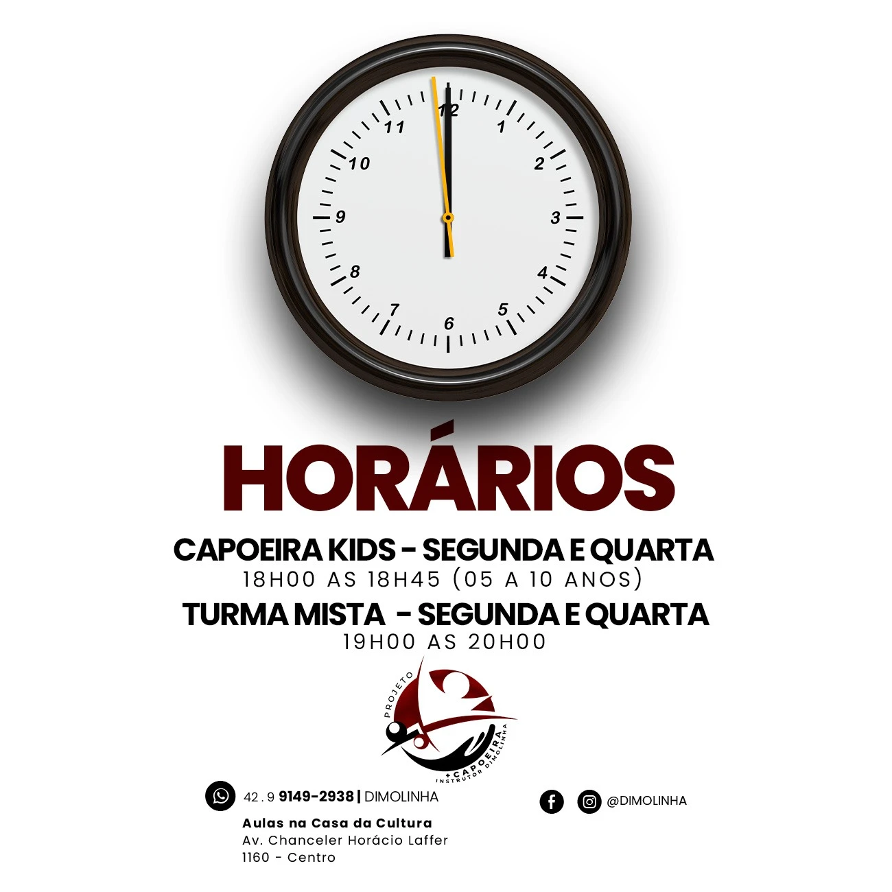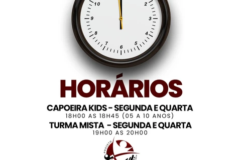 As aulas serão às segundas e quartas-feiras, para o grupo Capoeira Kids, das 18h às 18h45, e para as Turmas Mistas, das 19h às 20h, no Centro Cultural Eloah Martins Quadrado (Casa da Cultura).