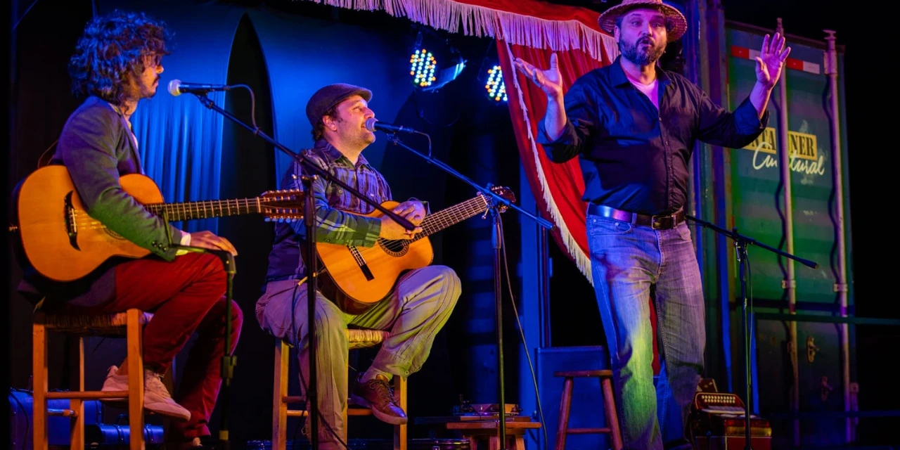 O espetáculoOs atores Richard Rebelo e Flora Vieira Chagas, e os músicos Beto Collaço e Luís Fernando Diogo vão apresentar um espetáculo concebido em linguagem adequada para teatro de rua, referenciada na Comédia Dell’Arte. A peça, que terá tradução em libras, trata da identidade cultural e também de uma imensa “fome” – inclusive de arte, cuidado e amor – a partir da conflituosa relação entre um brasileiro que não se reconhece como sul-americano e uma estrangeira com sotaque espanhol, que não sabe onde nasceu. Após perderem o navio para a Argentina, os dois decidem percorrer a pé o caminho até o país vizinho, enquanto procuram criar um número artístico que possa lhes garantir a sobrevivência.