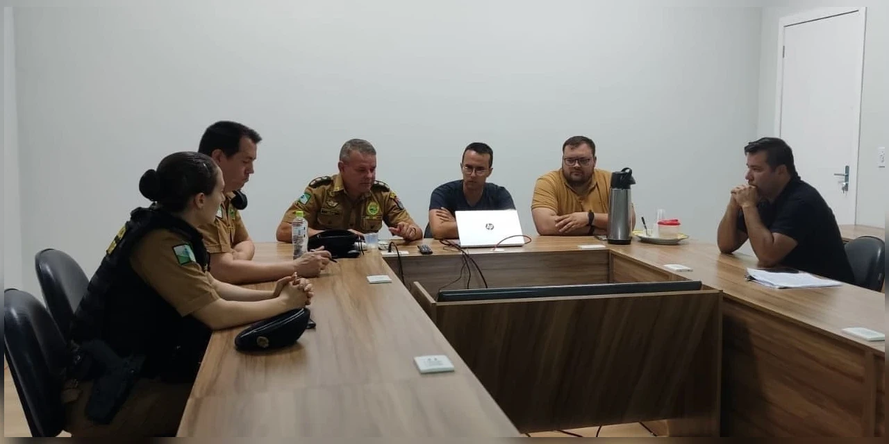 Participaram da reunião: o Tenente-Coronel Walter, o Major Rodriguez, a Comandante do Pelotão de Trânsito do Batalhão, Aspirante Guimaraes, o Chefe da 24° CIRETRAN, Eliton Oliveira, e o responsável pela TBTRAN, Jorge Luiz Vella Junior.
