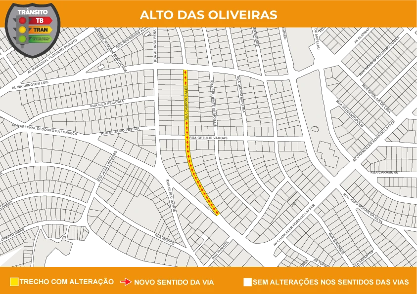 Rua Campos Sales, Alto das OliveirasA Rua Campos Sales, no Bairro Alto das Oliveiras, passará a ter mão única de circulação, com início na Avenida Marechal Deodoro da Fonseca até Alameda Washington Luís.