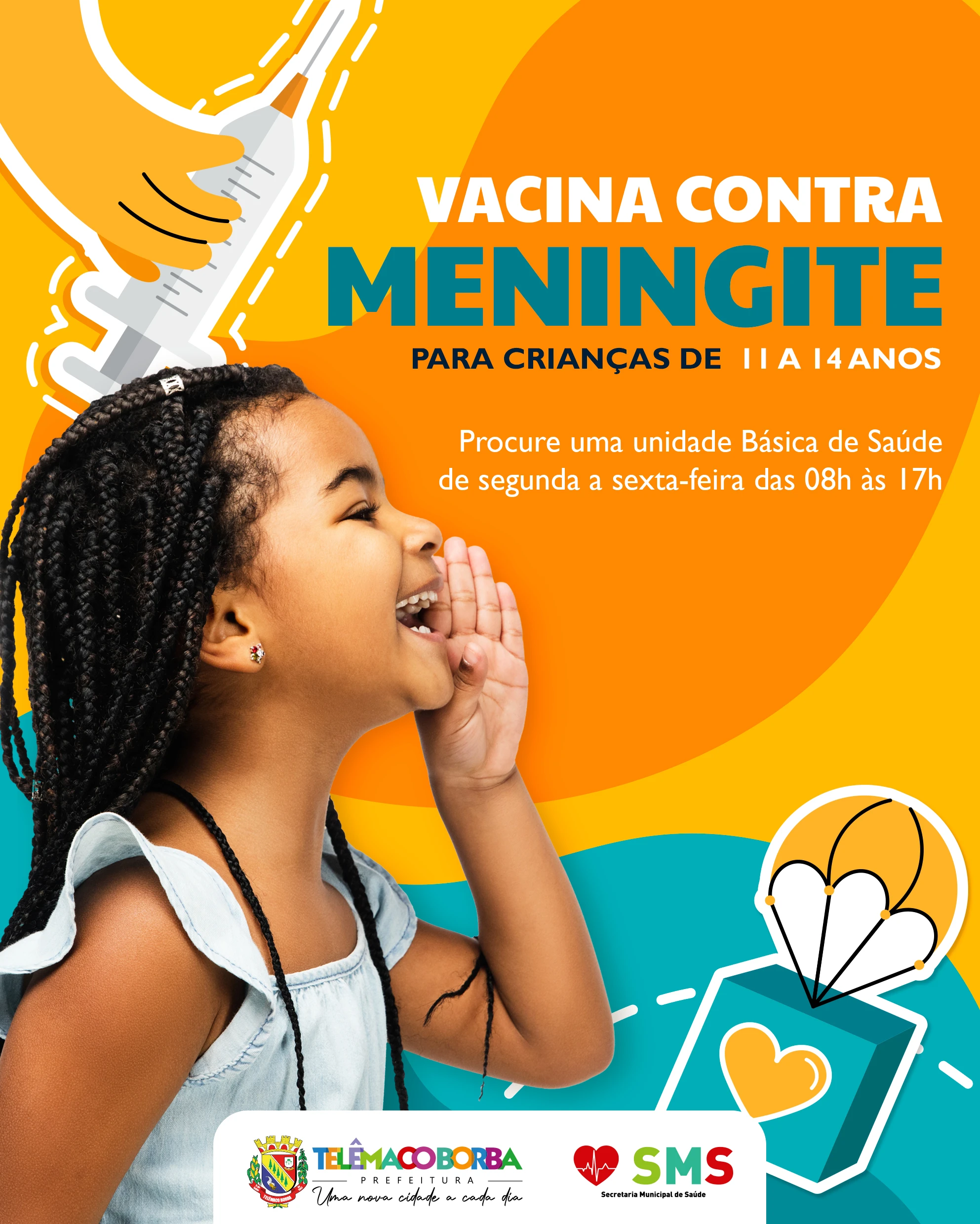 COM ASSESSORIAS - A Secretaria Municipal de Saúde (SMS) alerta os pais e responsáveis que vacina contra a Meningite ACWY está disponível para o público de 11 a 14 anos, em todas as Unidades Básicas de Saúde (UBS), de segunda a sexta-feira, das 08 às 17 horas.