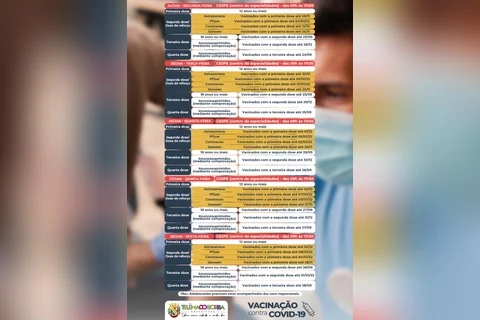 A SMS alerta que houve a redução do prazo entre a primeira e segunda dose da Pfizer para 21 dias. Com isso as pessoas com 12 anos ou mais que tomaram a primeira dose do imunizante, devem seguir esse prazo de 21 dais para tomarem a segunda dose.
