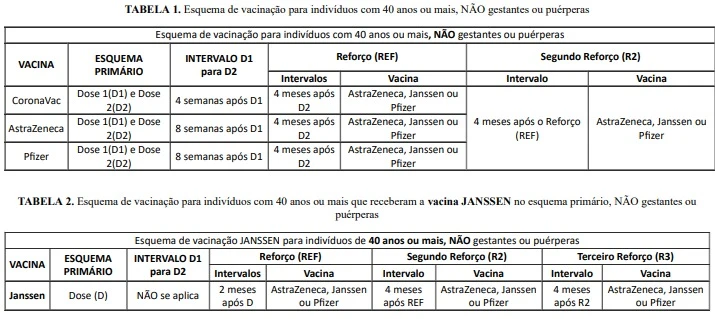 A aplicação de um segundo e terceiro reforço para todas as pessoas de 40 a 49 anos de idade que receberam a vacina Janssen no esquema primário (dose única), independente do imunizante utilizado nos reforços anteriores, também já está disponível.