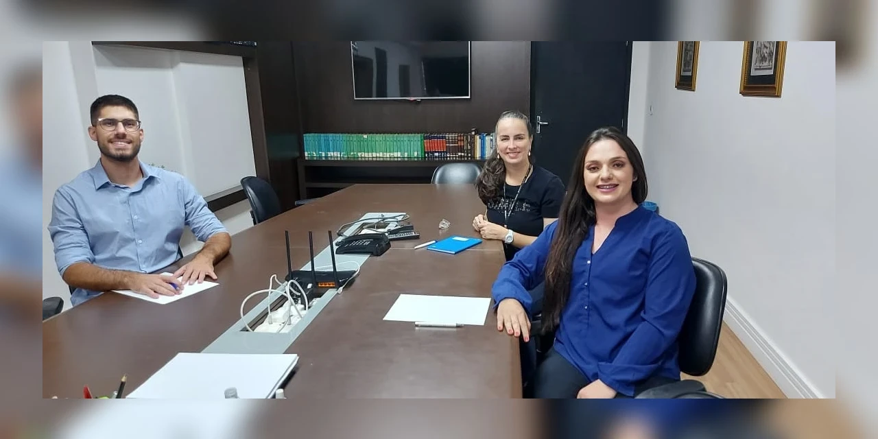 COM ASSESSORIAS - A chefe da Divisão de Esportes, Kessi Iarosz, participou de uma reunião na UniFateb, na manhã de quarta-feira (15). Ela se encontrou com o coordenador da área da Saúde, Douglas Dal Molin, e a coordenadora da Área de Humanas e Sociais Aplicadas, Sandra Regina Merlo, onde debateram uma parceria para o programa “Ação Colaboração”.