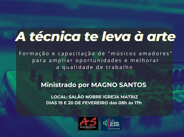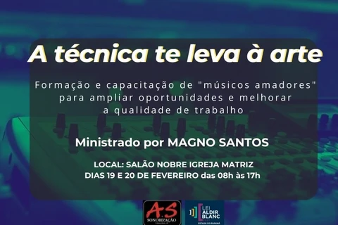O projeto vencedor pela Lei Aldir Blanc 2021 será ministrado por Magno José dos Santos, profissional na área há 25 anos. O objetivo do projeto é capacitar músicos para a operacionalização do som, preparando esses artistas e capacitando novos técnicos de áudio para as realidades vividas dentro da comunidade artística.