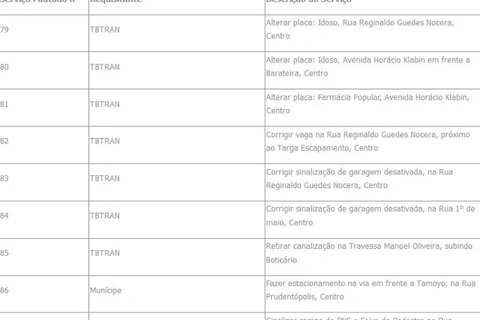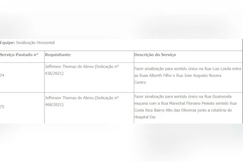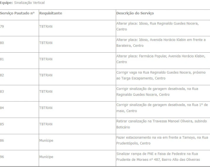 TBtran divulga a pauta de serviços da Seção de Sinalização Viária até 04/02