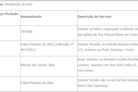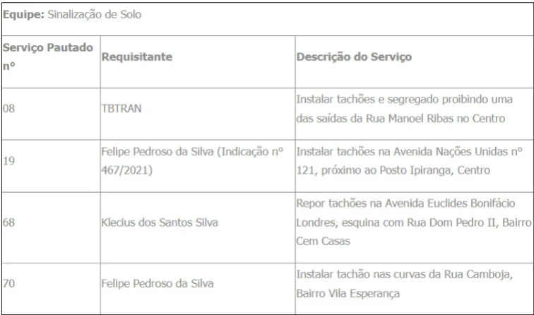 COM ASSESSORIAS - A Administração Municipal, por meio da Divisão Municipal de Segurança Pública e Trânsito (TBtran), informa a pauta de serviço da Seção de Sinalização Viária no período de 03/01 a 07/01 de 2022.
