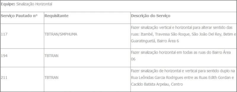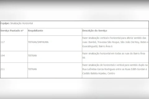 TBTran divulga pauta de serviços de Sinalização Viária, período de 11 a 18/07
