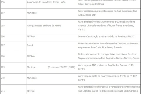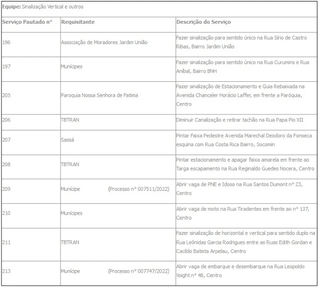COM ASSESSORIAS - A Administração Municipal, por meio da Divisão Municipal de Segurança Pública e Trânsito (TBTran), informa a pauta de serviços da Seção de Sinalização Viária no período de 11/07 a 18/07 de 2022.