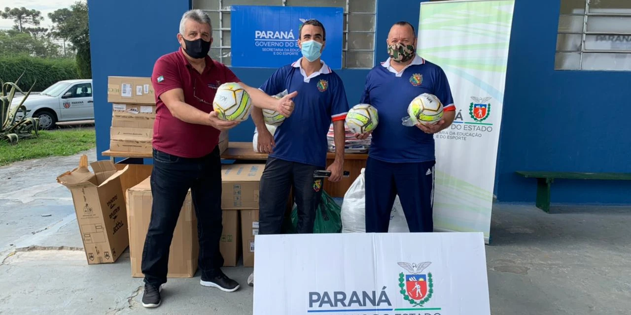 COM ASSESSORIAS - O Município de Telêmaco Borba foi contemplado nesta quinta-feira (06) com kits do Programa Educação Mais Esporte, Transforma Paraná, do governo do estado do Paraná. Anderson Rogério Wendt (Bello), chefe da Seção de Aprendizado Esportivo, representou a Secretaria Municipal de Cultura, Esporte e Recreação (SMCER) em Curitiba.
