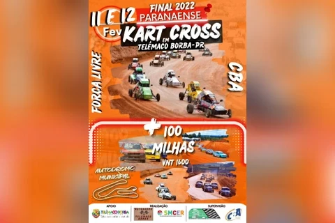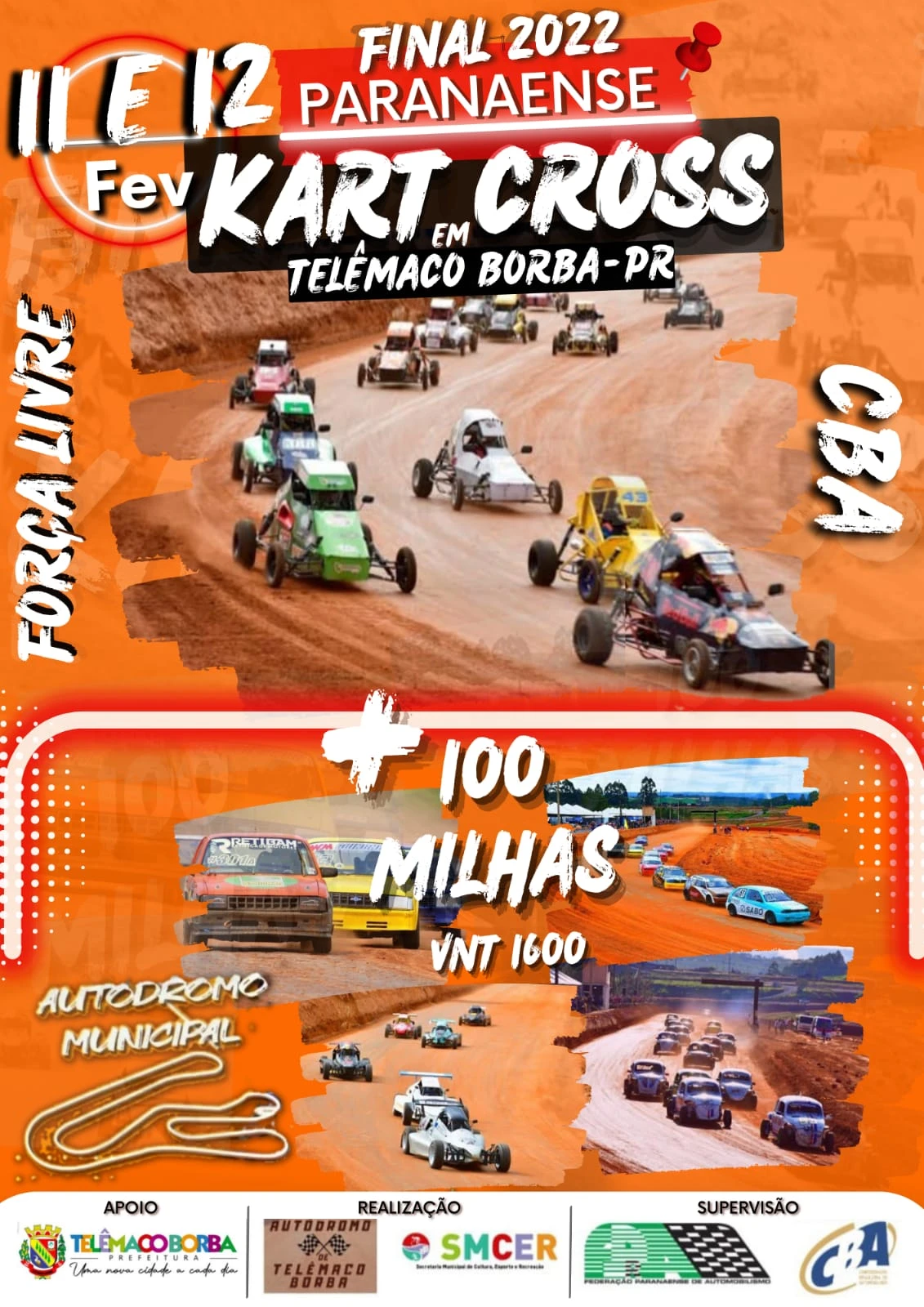 COM ASSESSORIAS - O município de Telêmaco Borba sedia, nos dias 11 e 12 de fevereiro, a terceira e decisiva etapa do Campeonato Paranaense de Kartcross nas categorias Original CBA e Força Livre, válida pela temporada de 2022, e também as 100 Milhas da Velocidade na Terra (VNT) 1.600, no Autódromo Municipal.