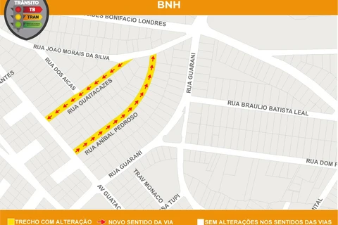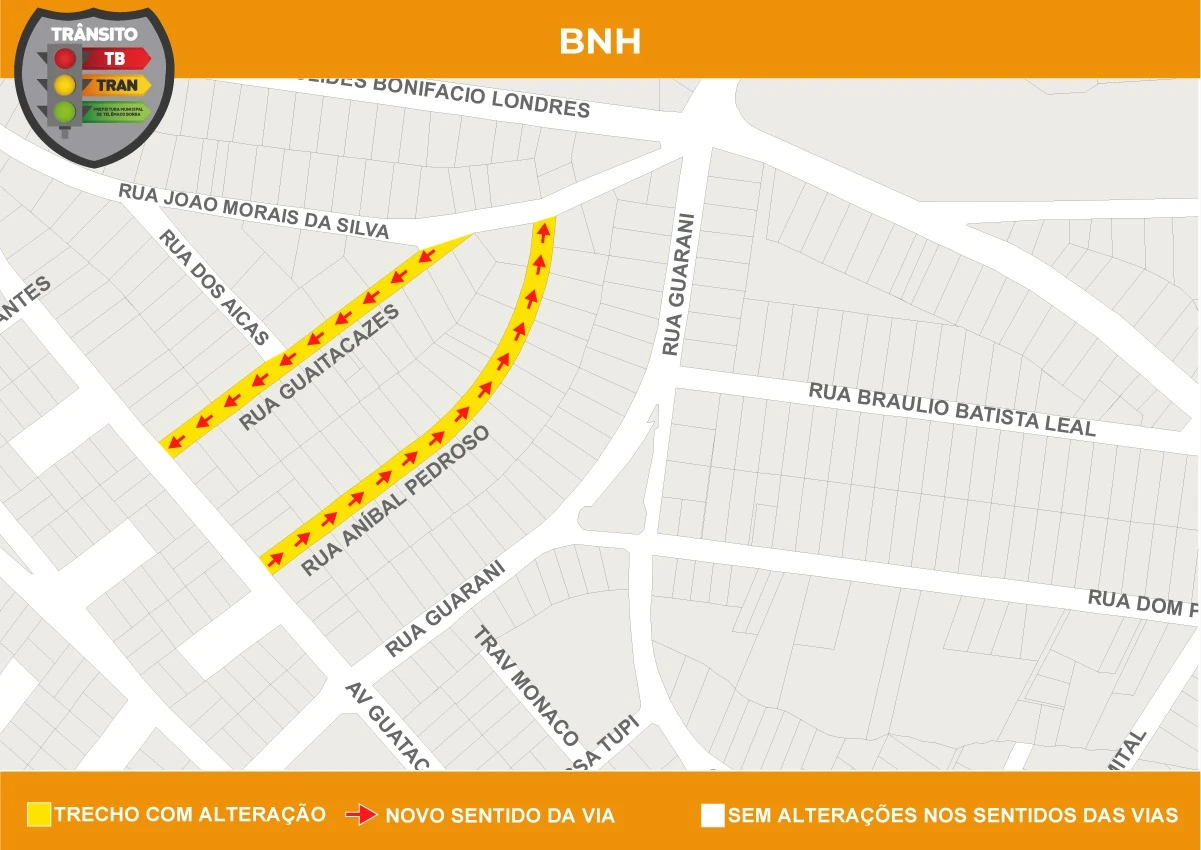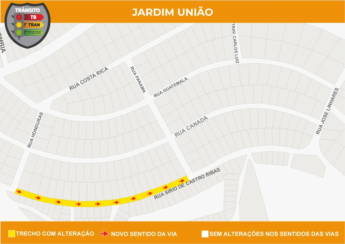 COM ASSESSORIAS - A Administração Municipal, através da Divisão Municipal de Segurança Pública e Trânsito (DMSPT/TBTRAN), informa que a partir da próxima segunda-feira (25), as seguintes ruas dos Bairros BNH e Jardim União passarão a ter sentido único de circulação.