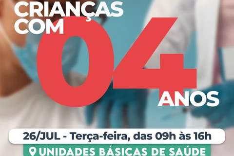 A vacina é recomendada para primeira ou segunda dose em crianças com 05 anos ou mais. Para ser imunizada, é necessário que a criança esteja acompanhada pelos pais ou responsável e apresente o cartão de vacinação.